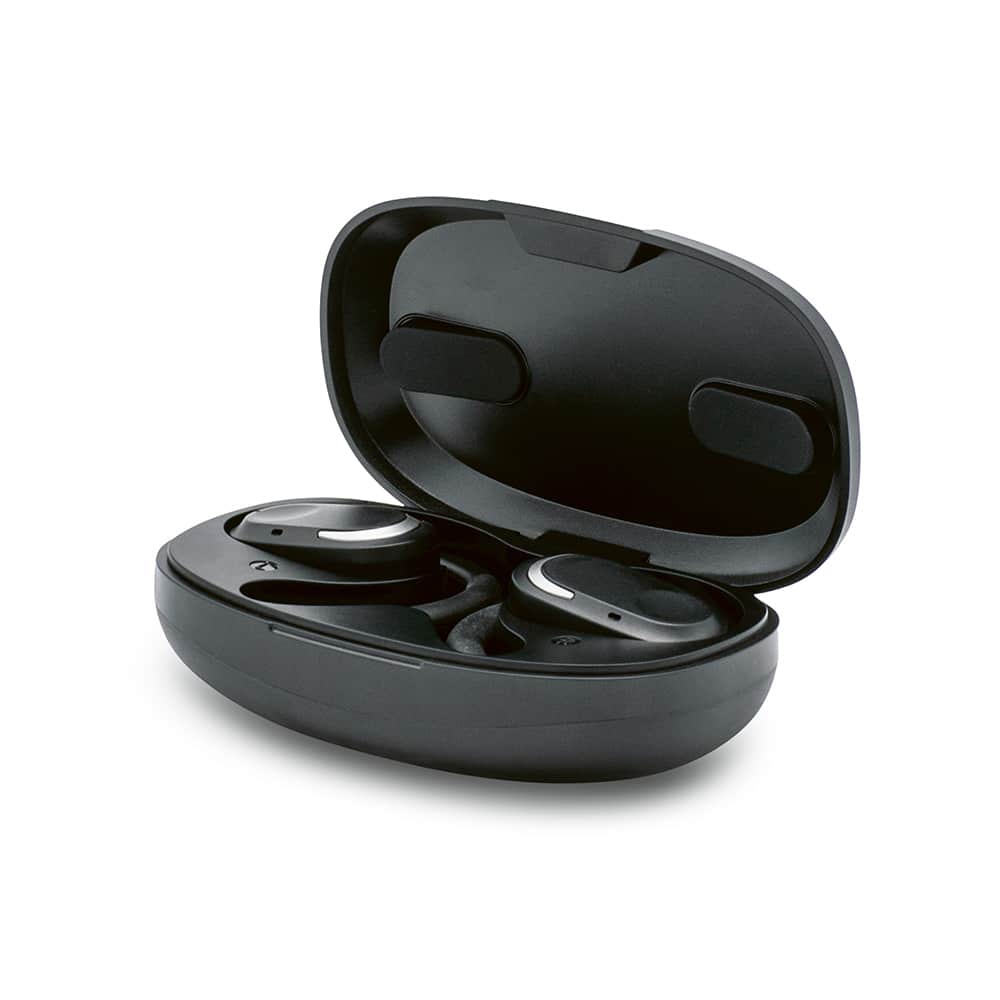 Unikt, åbent design med 120° roterende ørebøjler – sidder sikkert og komfortabelt under aktivitet.